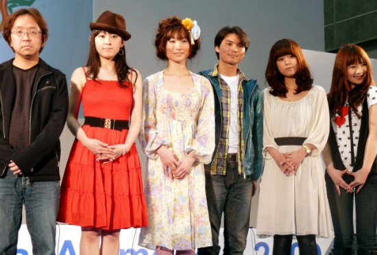 Съёмочная группа (слева направо): режиссёр сериала Макото Бэссё, актёры-сэйю Микако Такахаси (в аниме Кунико Ходзё), Юй Арига (в аниме Микуни), Макото Исии (в аниме Кунихито Кусанаги), Юка Игути (в аниме Карин Исида), певица Мэй Накабаяси (May'n), исполнившая опенинг сериала.