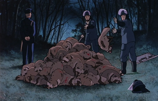 Тануки начинают героическую, но обречённую войну за выживание. Для этого они возрождают древнее искусство превращения. С его помощью они могут