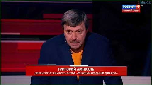 Описание: «Вечер с Владимиром Соловьёвым» (в воскресные дни выходит в эфир под названием «Воскресный вечер с Владимиром Соловьёвым») — авторское общественно-политическое ток-шоу Владимира Соловьёва, которое изначально возникло и существовало на телеканале НТВ, а с 9 сентября 2012 года выходит на телеканале «Россия-1». В передаче обсуждаются актуальные новости и события. В дискуссии, проходящей в студии программы, принимают участие эксперты, политики, ...