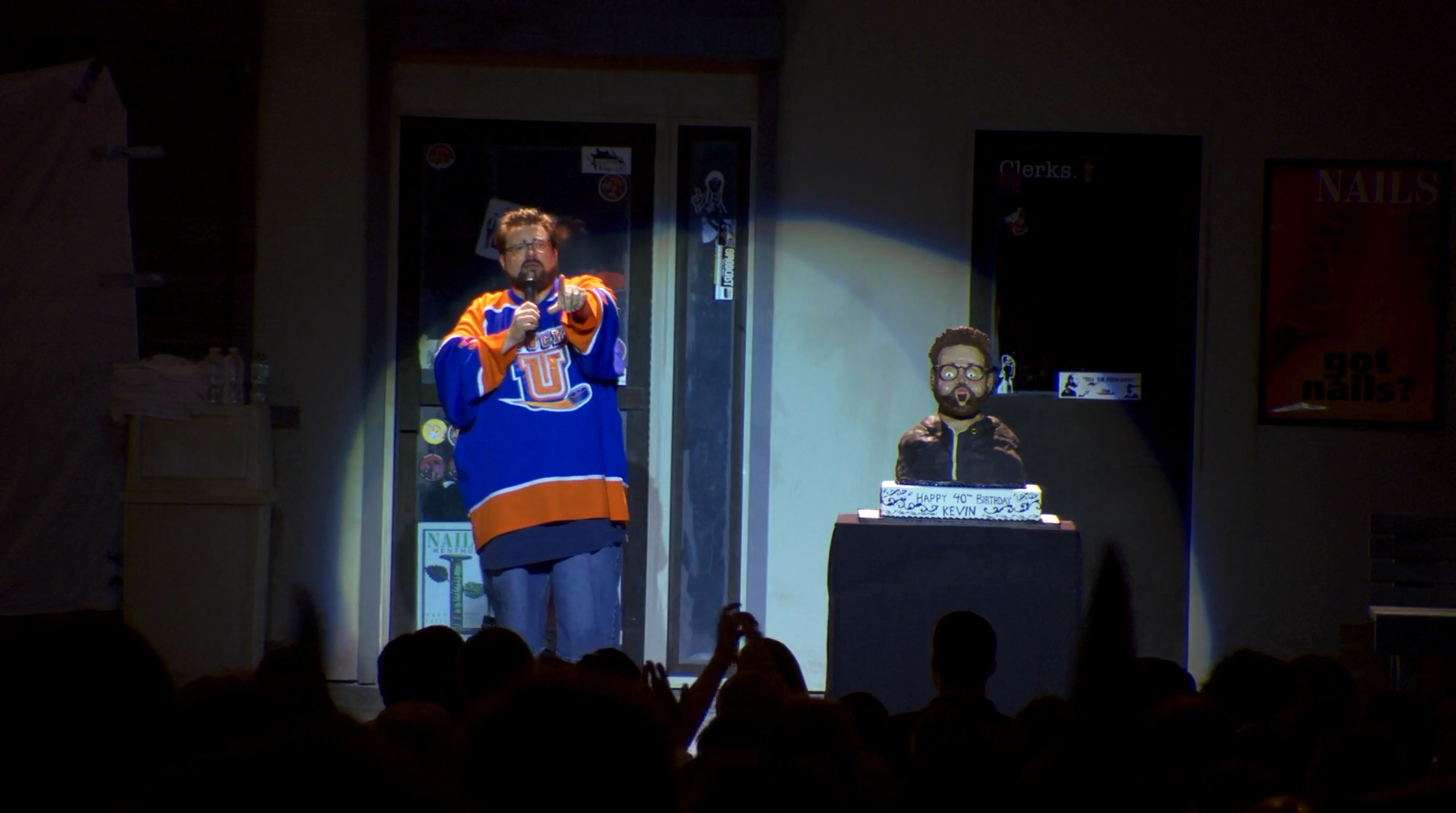 Описание: Культовый американский режиссёр Кевин Смит, снявший Клерков, Тусовщиков из супермаркета, В погоне за Эми, Догму, Джей и Молчаливый Боб наносят ответный удар, Девушка из Джерси, Клерки 2, Зак и Мири снимают порно, Двойной копец / Крепкие орешки снова отвечает на вопросы своих фанатов. Круглую дату (сороковник) Кевин Смит вновь отмечает в родном Ред-Бэнке, штат Нью-Джерси. Слегка помятый последними жизненными событиями, он и теперь остаётся неунывающим весельчаком, для которого запретных тем — не существует.
