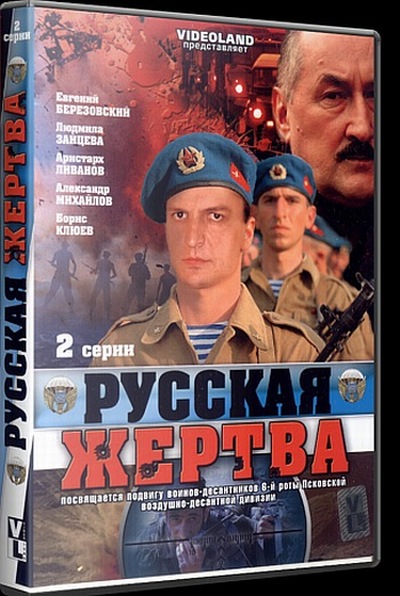 Описание: Работа над фильмом велась по благословению Русской Православной Церкви. В отличие от других произведений, воспевающих подвиг псковских десантников, фильм «Русская жертва» рассказывает не столько о воинском, сколько о духовном подвиге героев. Это фильм-размышление о глубоком духовном смысле воинской присяги, о вере и верности, об истории русского народа, ярким светом в которой просиял подвиг русских солдат, о путях национального и духовного возрождения России...