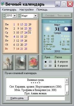 Описание: Вечный календарь - удобное приложение, имеющее множество особенностей. В программе реализован алгоритм, позволяющий получать данные о любом дне григорианского или юлианского календаря в период с 100 по 3000 год н.э.