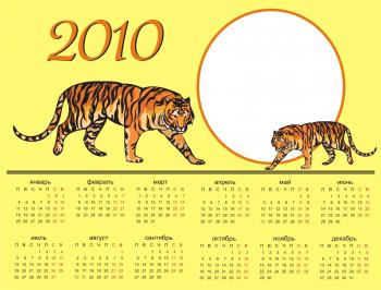 Шаблоны для изготовления календарей на 2010 год год Тигра [2009, рамки для Photoshop]