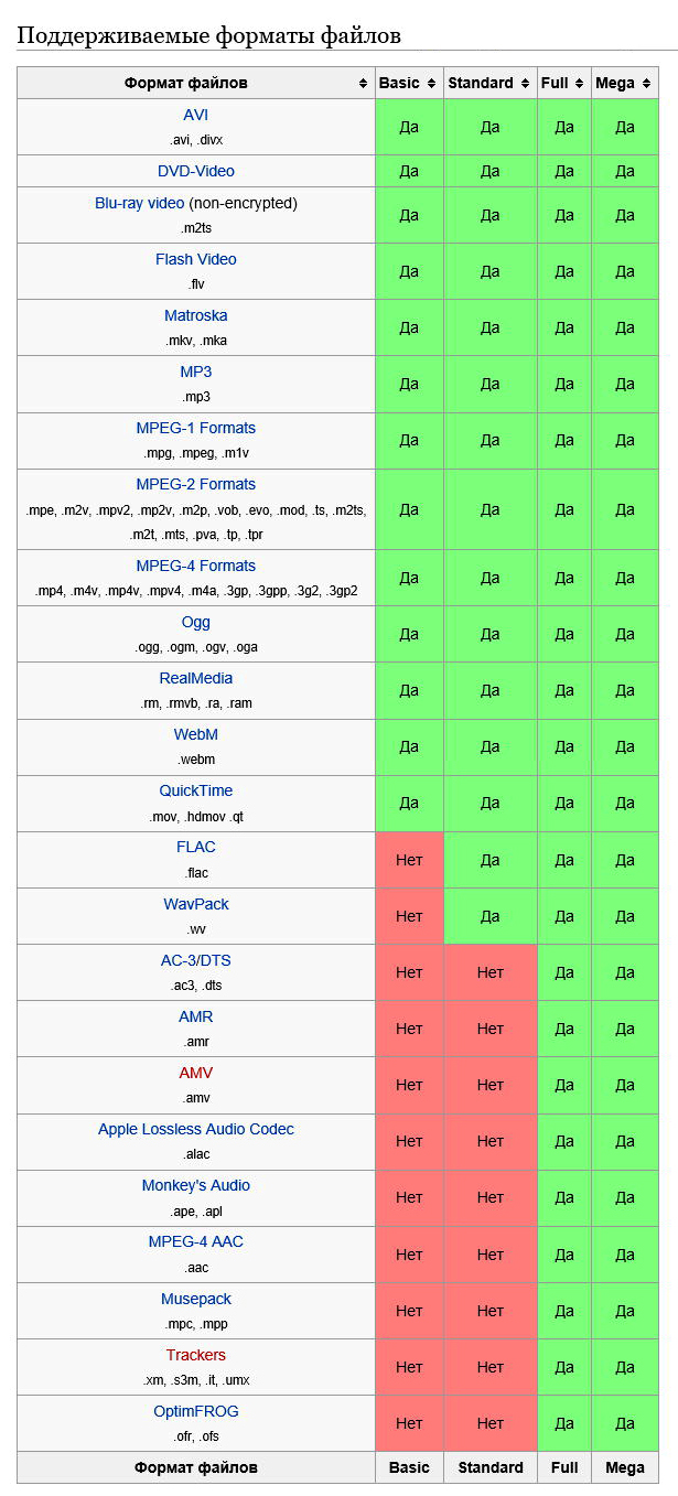 - Мега (K-Lite Mega Codec Pack)