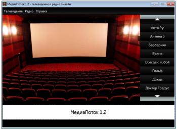 Описание: Приложение МедиаПоток позволяет просматривать множество телеканалов и прослушивать десятки радиостанций через Интернет. Нет необходимости в дополнительном оборудовании, достаточно обычного компьютера подключенного к Интернет. Программа МедиаПоток не требует установки, достаточно скопировать программу на компьютер, запустить и она уже готова к работе. МедиаПоток позволяет смотреть более 60 телеканалов (музыка, спорт, образование, новости, путешествия и т.д.) и слушать около 80 радиостанций.