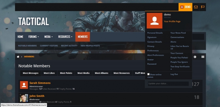 Демо: __themehouse.com/xenforo/themes/tactical
