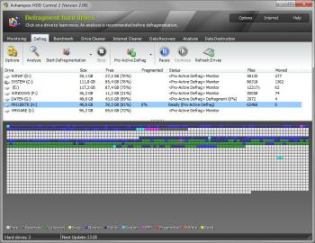 Если Вы не за своим компьютером, программа может быть настроена так, чтобы вовремя уведомить Вас относительно потенциальной тревоги по электронной почте. В итоговом отчете программа также предоставляет информацию о здоровье и работе жесткого диска, показанного в процентах. В течение долгого времени, постоянно растущее число нежелательных и ненужных файлов накапливаются на Вашем жестком диске, и Ashampoo HDD Control является полезным инструментом, чтобы помочь Вам определить местонахождение таковых и удалить эти файлы. Если доступного места недостаточно, программа может дефрагментировать Ваш хард, причем намного эффективнее стандартного Windows-дефрагментатора.