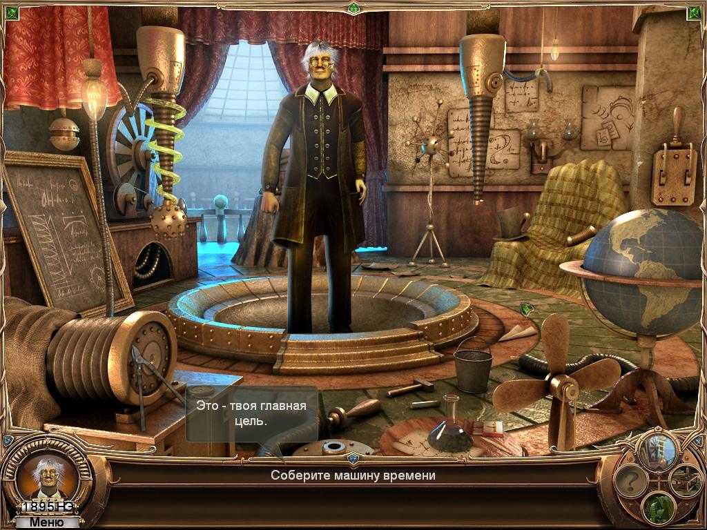 Описание: В этой игре в стиле "поиск предметов" сюжет закручен вокруг путешествий во времени. Ваш дедушка изобрел машину времени и затерялся в Вечности. Вам, достойному продолжателю дела деда, надо его отыскать и спасти, попутно решая головоломки и прочие задачи.Красивая и красочная игра.