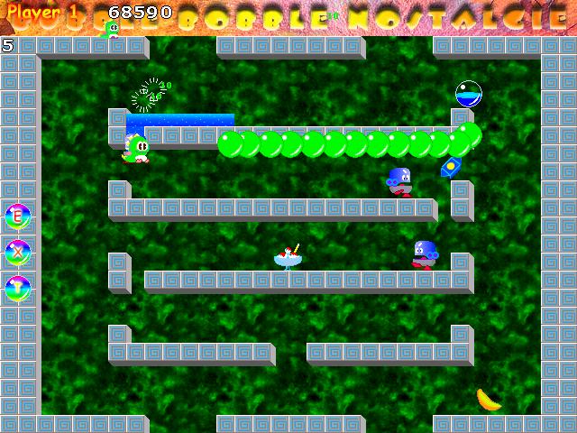 Время от времени появляются различные объекты. Некоторые из них (кристаллы, овощи, фрукты) дают только очки. Другие дают дополнительные возможности — ускоряют бег, увеличивают дальность или скорость стрельбы, позволяют стрелять вместо пузырей огнём. Иногда прилетают пузыри со смесью (если их сбить, то поток смеси потечёт вниз по платформам, смывая за собой врагов), молнией (если их сбить, то горизонтально полетит небольшая молния, сбивающая врагов), буквами.