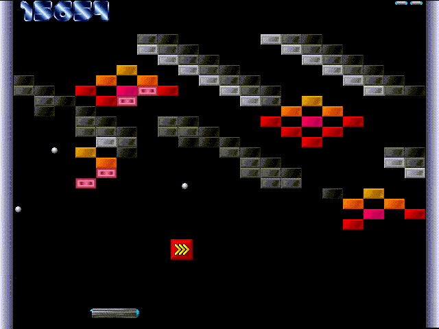 Описание игры: Игрок контролирует небольшую платформу-ракетку, которую можно передвигать горизонтально от одной стенки до другой, подставляя её под шарик, предотвращая его падение вниз. Удар шарика по кирпичу приводит к разрушению кирпича. После того как все кирпичи на данном уровне уничтожены, происходит переход на следующий уровень, с новым набором кирпичей. Есть и некоторое разнообразие: определённые кирпичи нужно ударять несколько раз, иногда появляются л ...