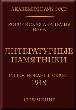 Описание: Литературные памятники» (ЛП, 1948 — н.в.) — советская, с 1992 российская книжная серия академической художественной и документальной литературы, классической поэзии. Издаётся с 1948 года под эгидой Академии наук СССР; с 1992 года — РАН. Инициатором создания серии были А. К. Дживелегов и А. М. Эфрос. Активное содействие оказал Президент АН СССР С. И. Вавилов. Жёстко определённой программы из ...