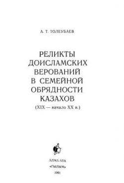 Реликты доисламских верований в семейной обрядности казахов (Толеубаев А.Т.) [1991, монография, этнография, DjVu]