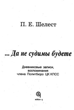 Да не судимы будете. Дневниковые записи, воспоминания члена Политбюро ЦК КПСС (Шелест П.Е.) [1994, публицистика, FB2, OCR без ошибок]