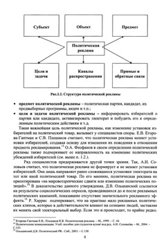 Описание: В книге излагаются различные аспекты функционирования политической рекламы, нормативно-правовые вопросы ее регулирования, основные категории избирательной кампании. Подробно рассматриваются различные формы политической рекламы и особенности их применения в избирательных кампаниях различного уровня. Большое внимание уделяется рекламным приемам и технологиям, используемым в предвыборный период.Пособие содержит схемы, богатый набор иллюстраций и множество примеров из практики российских и зарубежных избирательных кампаний. Каждая глава сопровождается литературой, вопросами для самопроверки и обсуждения, а также различными заданиями по теме.Предназначено для студентов направления «Реклама и связи с общественностью».
