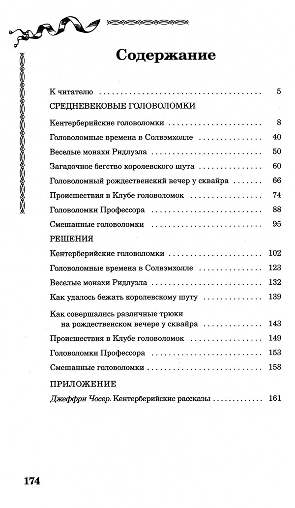 Предлагаем вашему вниманию сборник самых любопытных задач, придуманных Дьюдени. Каждая головоломка представлена автором в форме занимательной истории, рассказанной устами героев знаменитых «Кентерберийских рассказов» Джеффри Чосера, «отца английской поэзии» и основоположника английской национальной литературы.