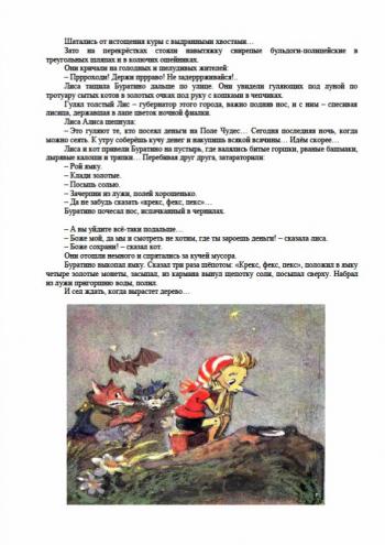 Описание: Это одна из самых любимых книжек нашей детворы. История деревянного человечка, озорного и непослушного, но доброго, искреннего и простодушного. Пройдя сквозь вереницу различных злоключений и испытаний, Буратино учится отличать добро от зла, набирается ума-разума, становится сильным и уверенным защитником для своих друзей и папы Карло.
