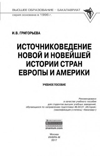 Источниковедение новой и новейшей истории стран Европы и Америки (Григорьева И.В.) [2017, Учебное пособие, DjVu]