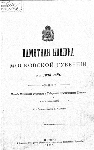 Памятные книжки Московской губернии (Московский столичный и Губернский Статистический комитет) [1890-1914, Статистика РИ, PDF, Отсканированные страницы]