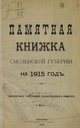 Памятные книжки Смоленской губернии (Смоленский Губернский Статистический комитет) [1855-1915, Статистика РИ, PDF]