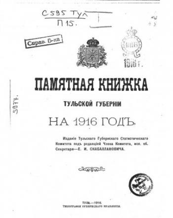 Памятные книжки Тульской губернии (Тульский Губернский Статистический комитет) [1848-1917, Статистика РИ, Обычный текст, Отсканированные страницы]