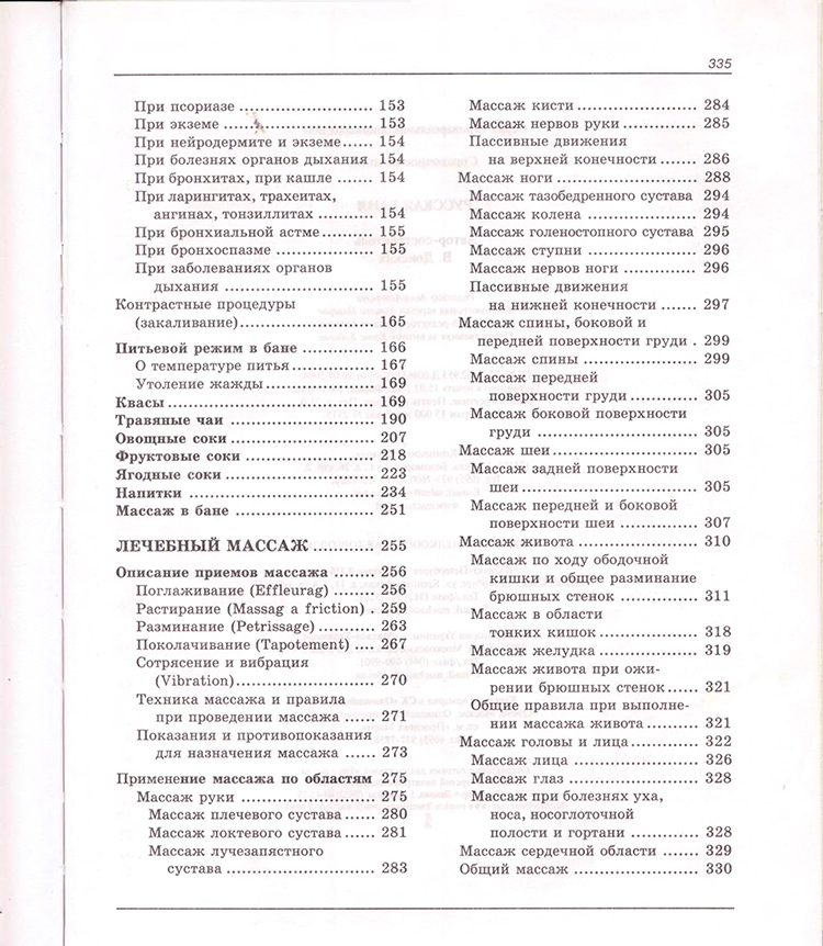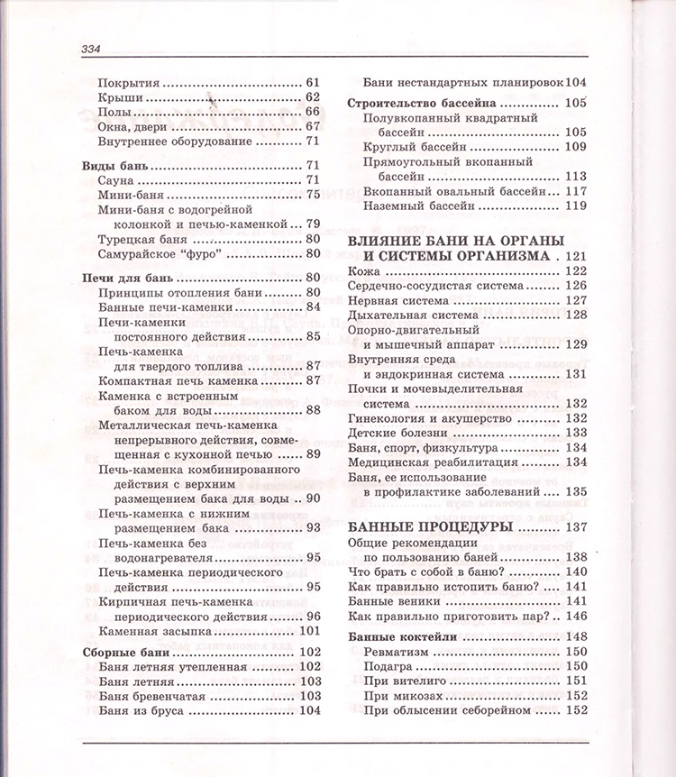 Рассказывается об основных правилах посещения бани: о подготовке к ней, о времени пребывания в парной, заготовке банных веников и использовании «ароматических коктейлей». Подробно описано оздоровительное воздействие банных процедур на различные органы и системы организма, приемы лечебного массажа.