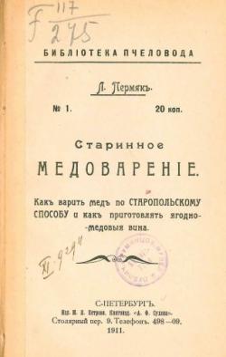 Старинное медоварение (Пермяк Л.) [1911, Кулинария, PDF, Отсканированные страницы]
