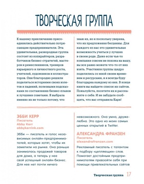 В своей книге Кари рассматривает все основные вопросы, связанные с трансформацией хобби в успешный бизнес — от бизнес-планирования, тайм-менеджмента и распространения продукции до расширения производства, поиска финансирования и решения юридических вопросов.