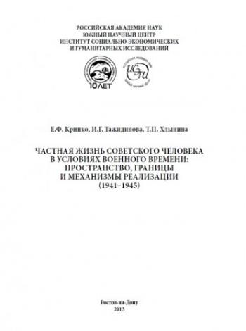 Частная жизнь советского человека в условиях военного времени: пространство, границы и механизмы реализации (1941 1945) ( Кринко Е.Ф., Тажидинова И.Г., Хлынина Т.П.) [2013, научное издание, история, P