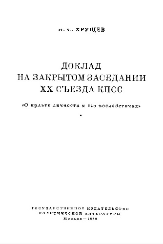 Доклад на закрытом заседании ХХ съезда КПСС (Н.С. Хрущев) [1959, История, Политика, DjVu, OCR без ошибок]