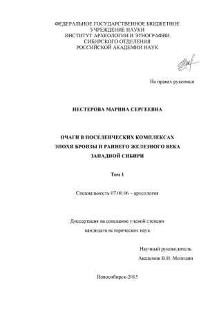 Очаги в поселенческих комплексах эпохи бронзы и раннего железного века Западной Сибири (Нестерова М.С.) [2015, диссертация, археология, история, PDF]