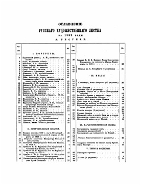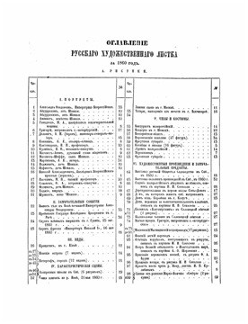 В данной раздаче представлен полный комплект :Русского художественного листка" за 12 лет, к сожалению, качество как текста, так и иллюстраций оставляет желать лучшего, что в принципе и понятно - учитывая колоссальную стоимость сборника на аукционах ждать что в сеть попадут его сканы в высоком разрешении было бы наверное несколько наивно... Так как на данный момент существует полное переиздание этого сборника выполненное издательством Альфарет, которое естественно не заинтересованно что бы широкая публика имела возможность печати "Русского художественного листка" самостоятельно в высоком качестве... Не заинтересованны в этом и различные сайты - продающие сканы сборника в более/менее высоком качестве... Ну и естественно не заинтересованны те, у кого этот сборник уже есть в оригинале или в переиздании или в виде купленных электронных копий... Поэтому разрешение представленных в раздаче страниц не превышает 150 dpi для иллюстраций и 200 dpi для текста и их печать хоть и возможна, но в довольно посредственном качестве, однако для простого ознакомления с изданием разрешения вполне достаточно... Текст на страницах часто имеет довольно сильные геометрические искажения из за некачественного сканирования и подвергся во всех номерах довольно скверной очистке, буквы порой слишком жирные и имеется много мусора, который возник ещё и потому, что страницы с текстом печатались на довольно тонкой бумаге и при сканировании они скорее всего просвечивались лампой сканера практически насквозь, в связи с чем на готовых сканах был виден текст и оборотной стороны страниц - следы которого и остались после очистки... Но несмотря на все огрехи, текст вполне читаем... Иллюстрации представлены без обработки, они тоже имеет посредственное сканирование и плюс к этому разную обрезку, порой часто захватывающую расположенные на них надписи, которые всё равно учитывая низкое разрешение практически ни где не читаются и точно узнать что там изображено можно только из их описаний в тексте... Все страницы в PDF отформатированы под усреднённый размер сборника (за счёт полей) и имеют размеры для текста: 27 х 35 см. и для иллюстраций: 35 х 54 см., плюс / минус пара миллиметров... Точный оригинальный размер неизвестен, так как до наших дней дошли переплёты уже в обрезанном виде и эта обрезка не имеет единого стандарта, но реальный размер колеблется в форматированных пределах... Несколько иллюстраций в PDF имеют более лучшее разрешение чем все остальные - но испорченны водяными знаками, которые в принципе можно при желании полностью удалить с помощью Фотошопа - однако это займёт довольно много времени... Оглавление первых годов издания не было представлено в виде отдельной таблицы и помещалось в последних годовых номерах вместе с другим текстом и не всегда было полным, оно могло содержать или список опубликованных за год статей или список иллюстраций.