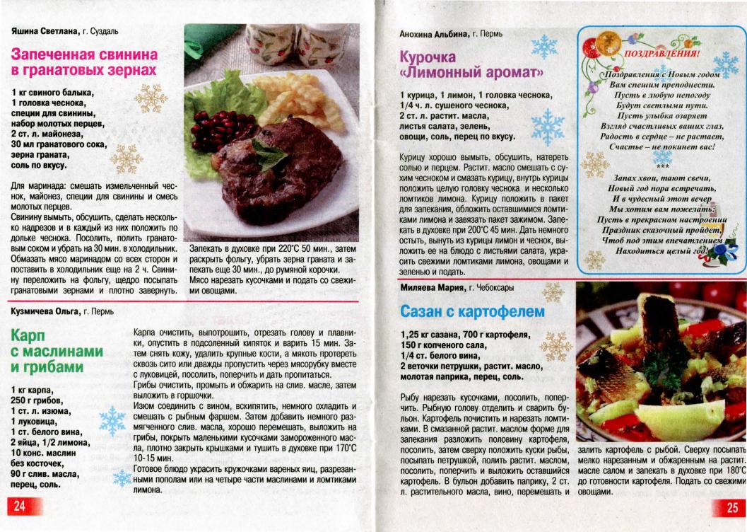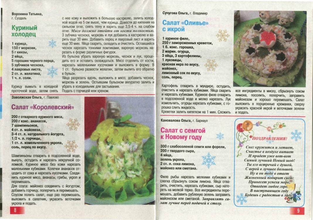 Описание: Журнал создан по лучшим рецептам, присланным в редакцию читателями и одобрен ими и их близкими. Этот выпуск посвящён блюдам новогоднего стола.