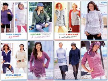 Описание: Хиты вязаной женской моды для предстоящей осени. 20 моделей одежды, связанной на спицах и крючком: стильные и элегантные пуловеры, жакеты, платье, шаль, пальто – в разной цветовой гамме, с узорами вдоль и поперек, разнообразных фасонов и силуэтов.