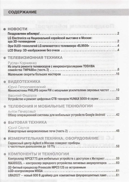 В каждом номере: Новости из мира электроники. Статьи по ремонту бытовой техники и электроники. Подробное описание и работа в тестовых режимах. Точные на 100% проверенные принципиальные схемы устройств. Практическое использование новых компонентов и технологий. Методика работы с современными измерительными приборами.